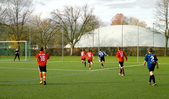 Weitaus motivierter trat die Mannschaft im zweiten Spiel auf: Eine verbesserte Abwehrarbeit, gepaart mit mehr Risikofreude nach vorne, sorgten für ein spannendes Spiel, das sehr knapp 1:0 gegen das Theodor-Heuss-Gymnasium gewonnen wurde. Capitano Daniel Schüber setzte Lukas Metzinger in der 12. Spielminute gekonnt in Szene, der mit einem scharfen Flachschuss den Angriff abschloss. Das stadtinterne Duell war damit entschieden…