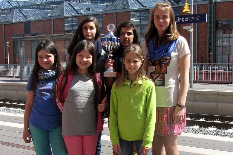 Am 2. Mai reisten 18 Teams aus ganz Deutschland nach Lingen. Die weiteste Anreise hatten mal wieder wir, die Mädchen vom Rotteck-Gymnasium. Neben den Favoritinnen aus Limburg und Aschaffenburg machten sich neben uns noch vier weitere Teams Hoffnung auf einen Podest Platz: die Mädchen aus Lingen, Trier, Berlin und Langen. Nachdem wir vor zwei Jahren einen guten siebten Platz belegt hatten und im letzten Jahr als Badischer Meister wegen eines gleichzeitigen Schüleraustausches nicht teilnehmen konnten, hatten wir uns für dieses Jahr ganz viel vorgenommen.