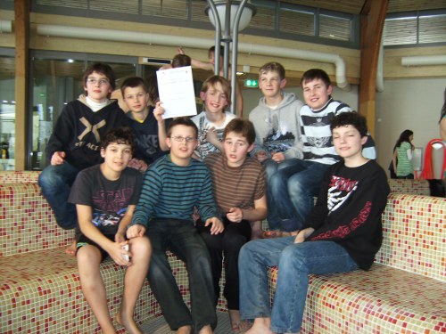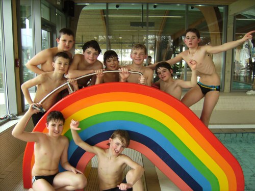 Die schon erfolgsverwöhnte Truppe der jungen `Starken´ mit Ansgar Sonichter, Louis Rösch, Johannes Bußmann, (Bruder von Theresa – also eine schwimmstarke Familie) Maximilian Humburger, Nikolai Schleske, Julian Schote, Maximilian Schiess und dem jungen Samuel Humburger aus der 5.Klasse ( auch wieder ein Familienzuwachs), der zum ersten Mal für das Rotteck starten konnte und gleich einen super Einstand hatte, wurde souverän Erste und konnte sich so ziemlich sicher für das RP-Finale qualifizieren.