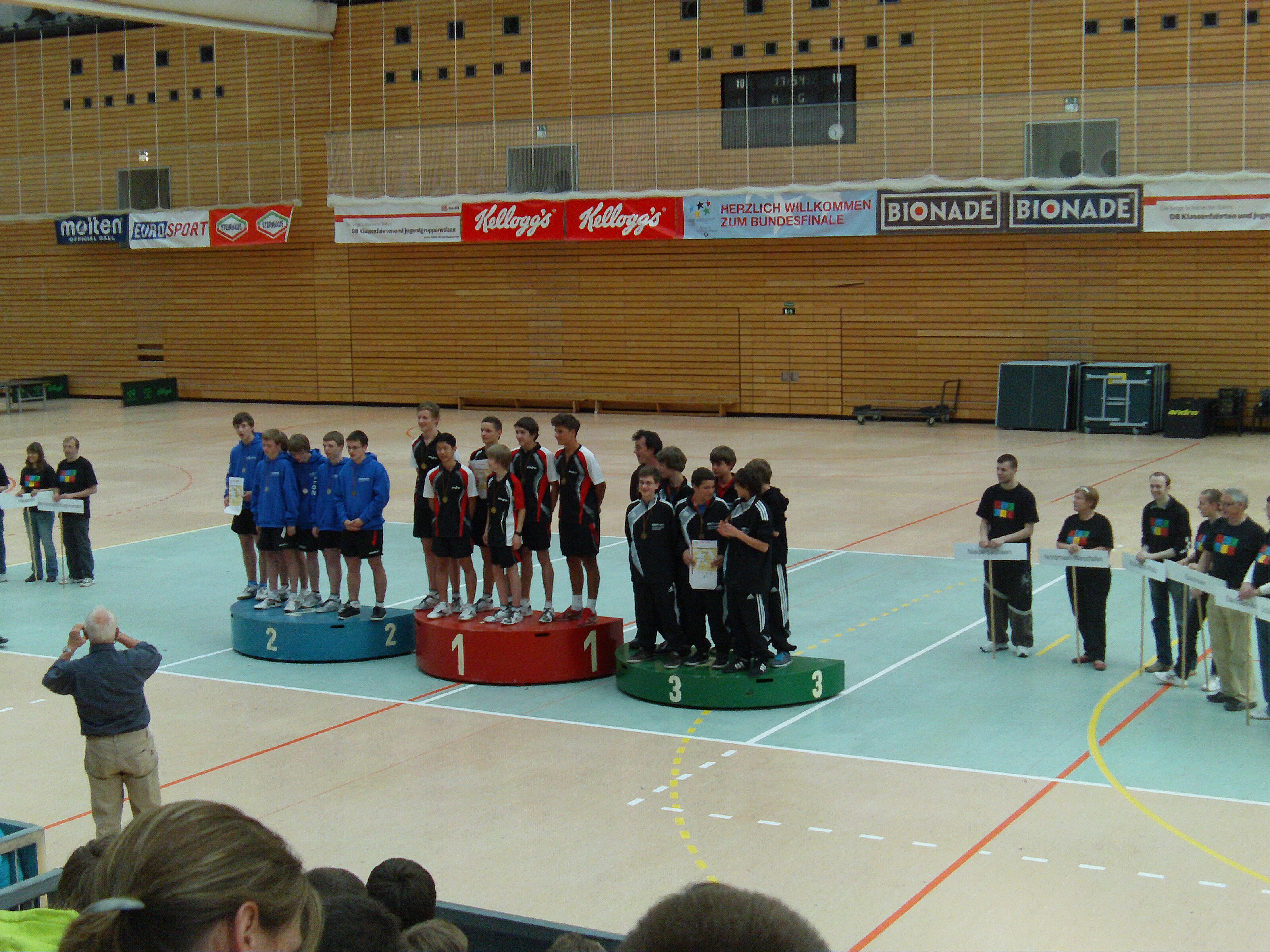 Im Mai 2011 fand dann das insgesamt 5-tägige Bundesfinale in Berlin statt. Im Kampf um die Plätze mit den anderen 15 Bundesländern konnten die Jungs des Rotteck-Gymnasiums einen hervorragenden 3. Platz belegen (siehe Bilder)!