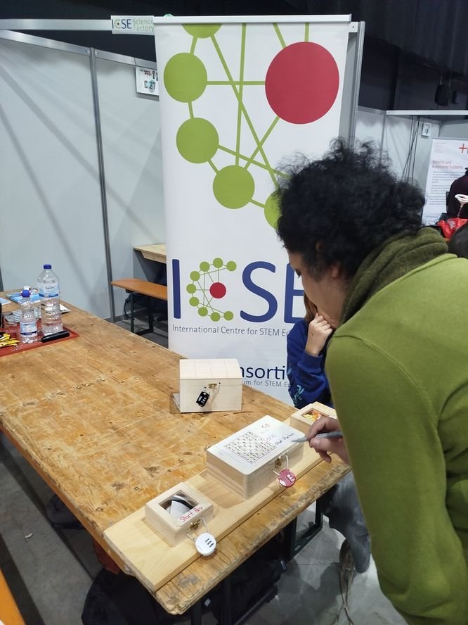 Die SchülerInnen aus Kl. 6 sowie aus Mathe kann ich doch (Mkid) Kl. 7 Escaperallyes, -räume und -boxen entwickelt. Die Entwicklung war ebenfalls in Zusammenarbeit mit dem ICSE. Zunächst wurde spielten sie selbst einen Escaperoom, eine Escapebox und zu Rallyes. Danach wurden selbst Knobeleien überlegt, gestaltet und erprobt. Für die Boxen wurde auch gebohrt und geschraubt. Bei den Science Days wurde dann fast durchgängig von Besucher:innen geknobelt und der Code für die Schatztruhe mit Süßigkeiten geknackt.
