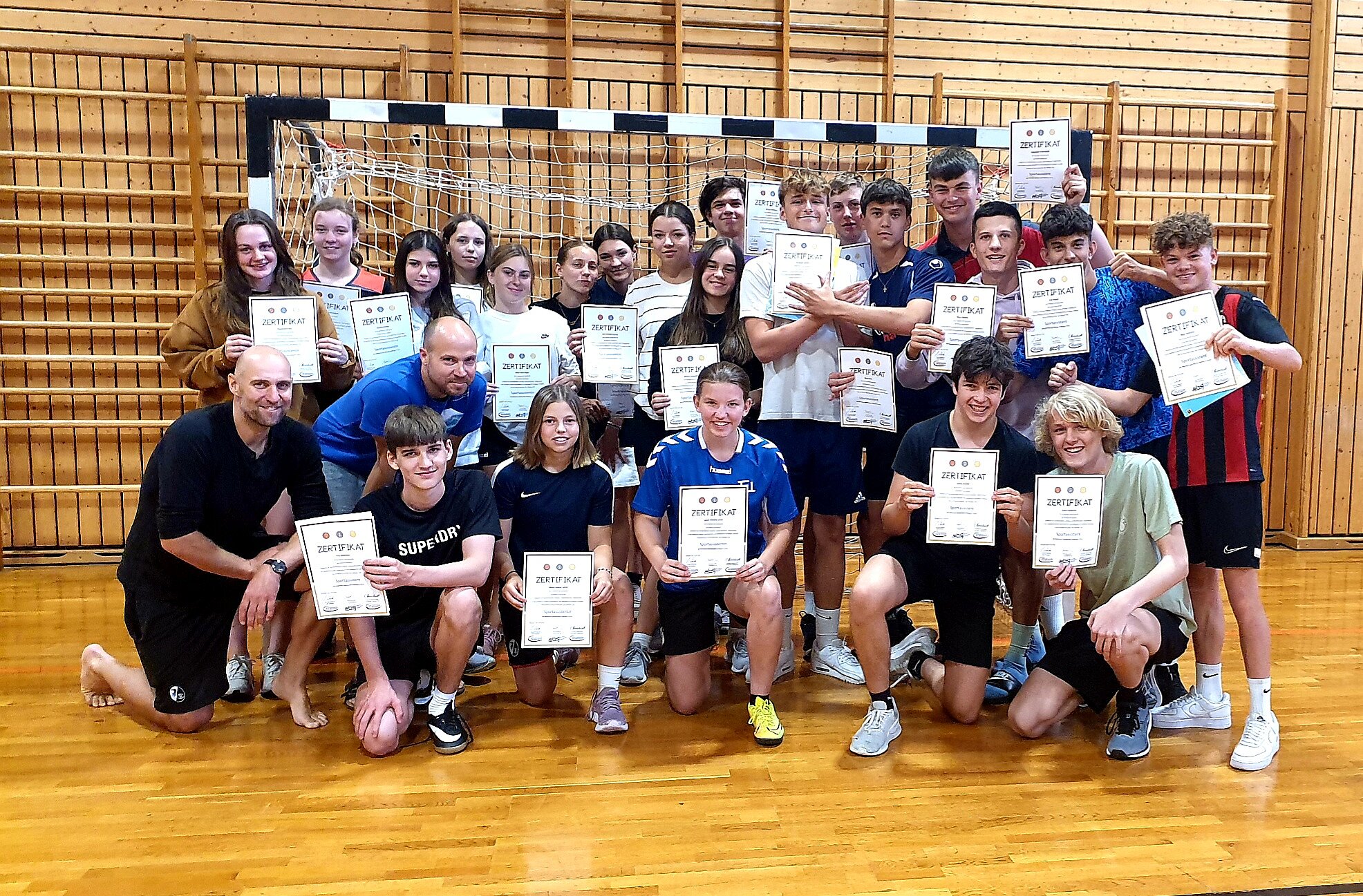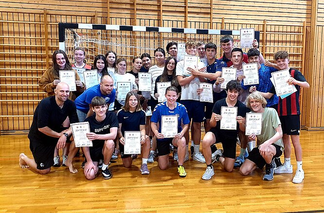 Ziel war die Teilnahme am Lehrgang zum Sportassistent*in, den alle erfolgreich bestanden haben. Von früh morgens bis oft spät abends wurden sportpraktische, theoretische und pädagogische Inhalte vermittelt. Die Schüler*innen sind damit befähigt, Gruppen in Vereinen anzuleiten.