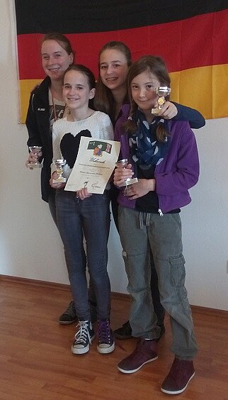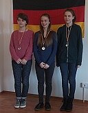 Unsere zwei erfahrenen Spielerinnen Sarah Hund am ersten Brett (Silbermedaille in der Brettwertung) und Tabea Lohrmann am zweiten Brett (Goldmedaille in der Brettwertung) verloren keine Partie und holten jeweils 6.5 Punkte. Überzeugen konnten auch die beiden Debütantinnen im Schulteam, Liv Burzacchini und Lotte Edler. Die beiden Fünftklässlerinnen haben ja noch eine Reihe von Jahren vor sich, um sich den deutschen Meistertitel zu sichern.