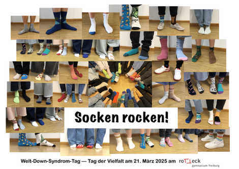 Aktion anlässlich des Welt-Down-Syndrom-Tags am Rotteck-Gymnasium. Zahlreiche Schüler*innen und Lehrkräfte beteiligten sich anlässlich des Welt-Down-Syndrom-Tags am 21. März an der Aktion "Socken…