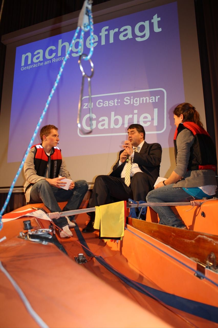 Der SPD-Parteivorsitzende Sigmar Gabriel stellte sich am Donnerstag, den 9.12.2010 den Fragen der beiden Moderatoren Charlotte Saurbier und Adrian Furtwängler, ob im Segelboot oder an der Bar, redetauglich wie immer beantwortete er die kritischen Fragen.