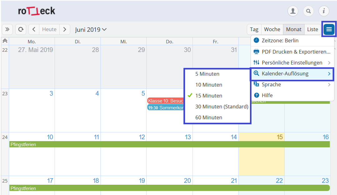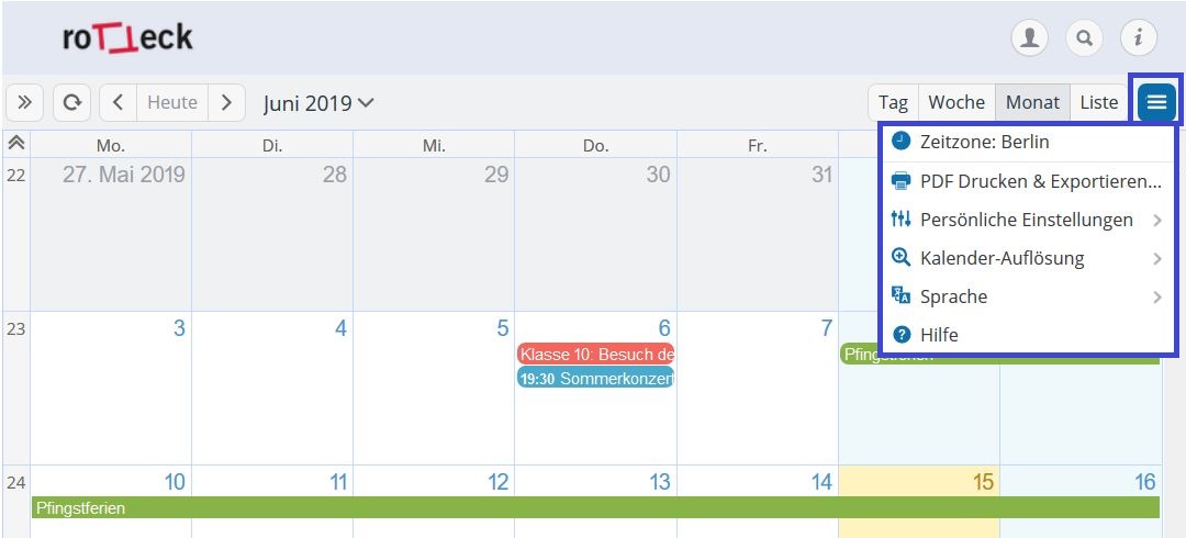 Auf dieser Seite erhalten Sie Hinweise zur Bedienung und den wesentlichen Funktionen des schulischen Terminkalenders.