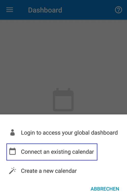 - Nachdem Sie eine der beiden Möglichkeiten gewählt haben, verbinden Sie die App mit dem Terminkalender.