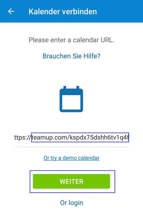 Wichtig: Redakteurinnen und Redakteure geben dazu ihren individuellen Kalenderlink ein, damit sie auch über die App Termine anlegen und bearbeiten können. Alle anderen Kolleginnen und Kollegen geben den Link auf die allgemeine kollegiumsinterne Kalenderansicht ein: https://teamup.com/kspdx75dshh6tv1q4f